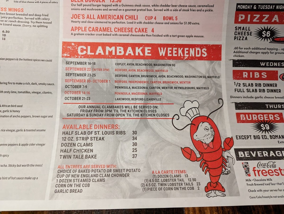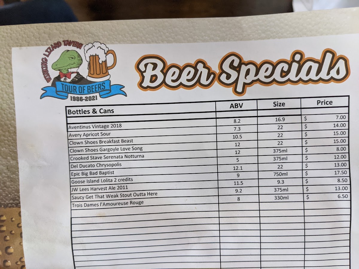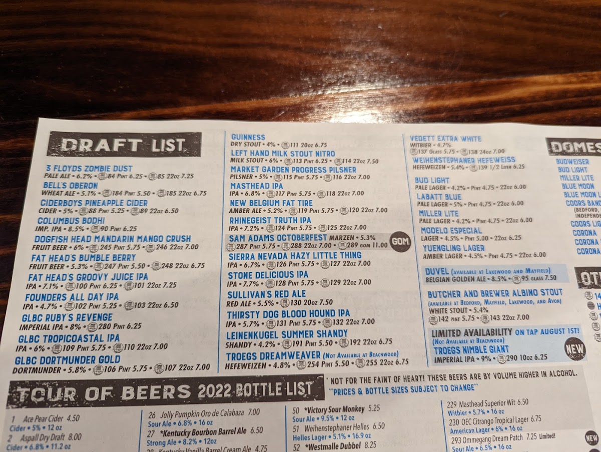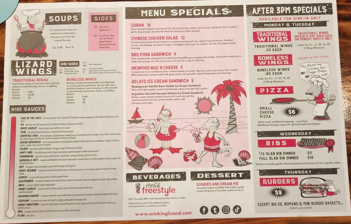 Winking Lizard Mayfield Menu
